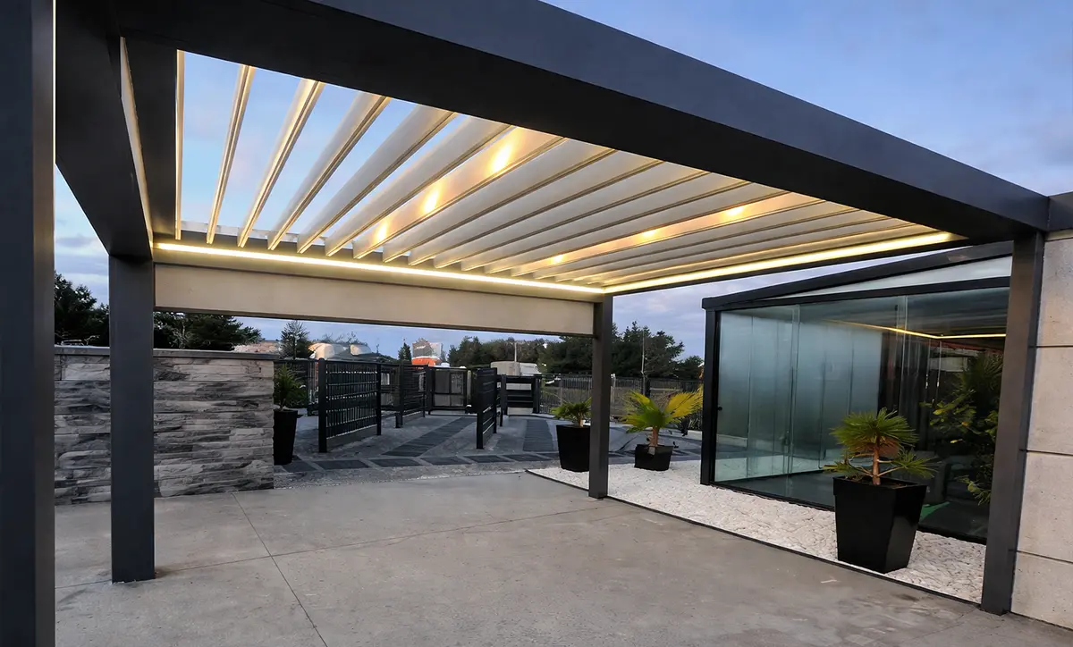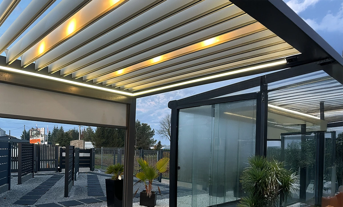 Nowoczesne pergole i zadaszenia tarasowe zwiększające funkcjonalność przestrzeni przydomowej.