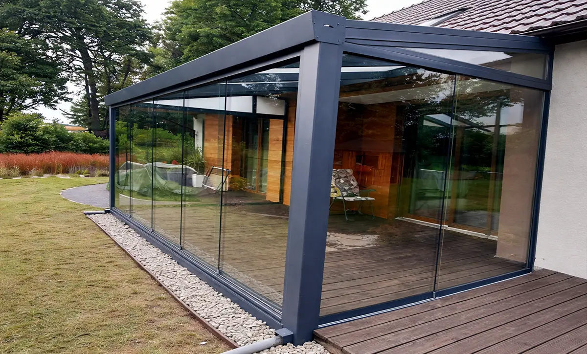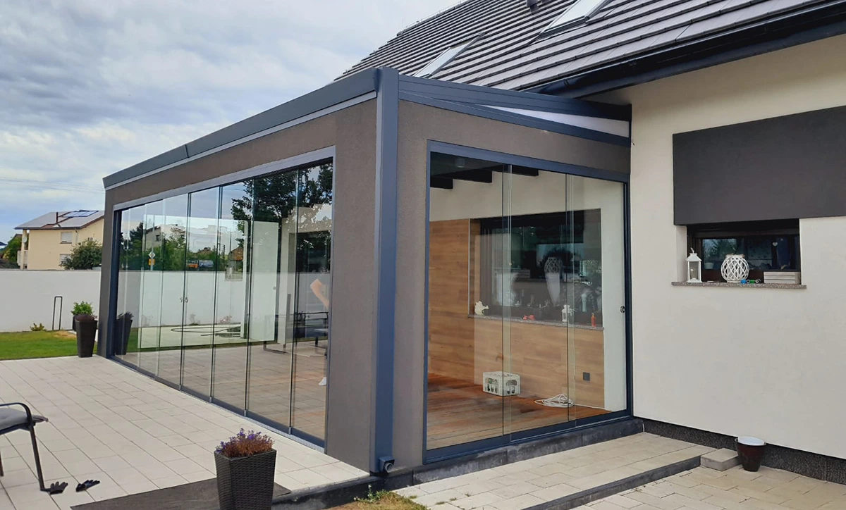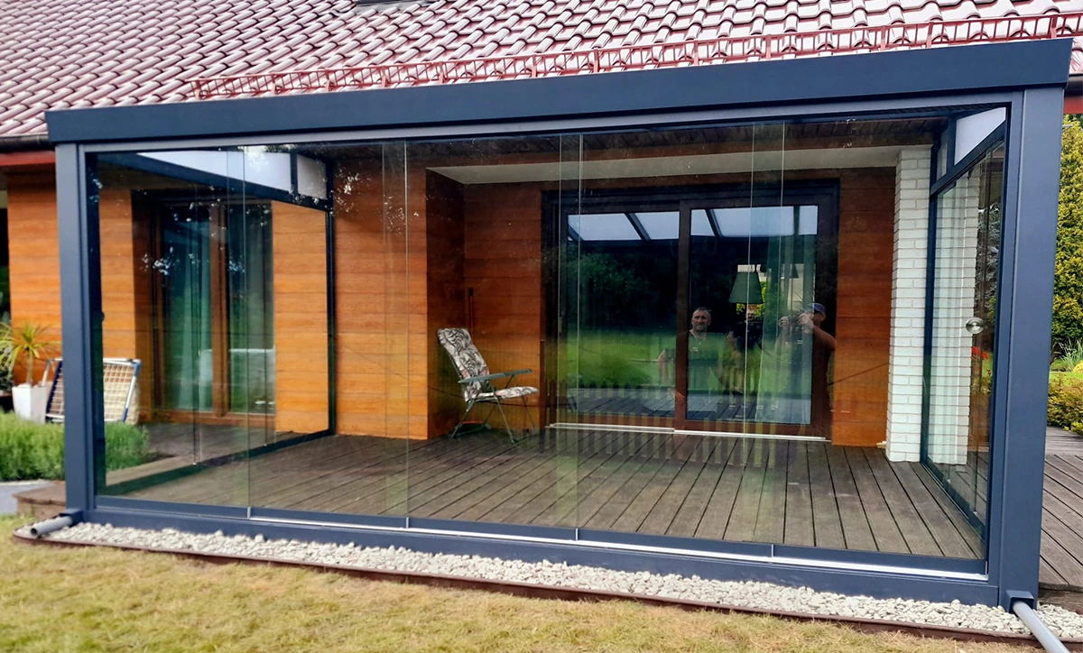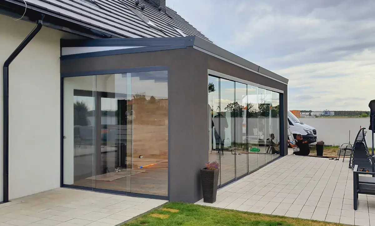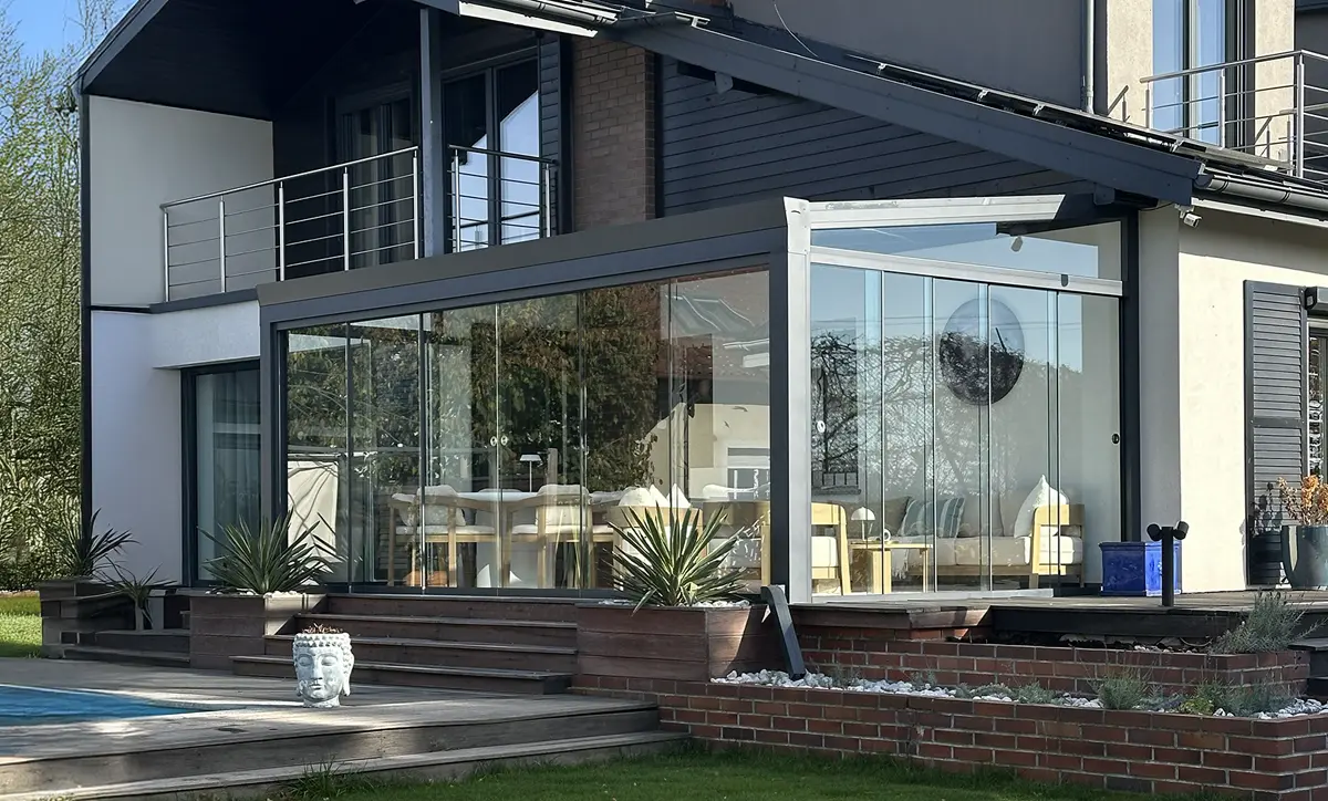 Przeszklone konstrukcje dopasowane do architektury budynku, odporne na warunki atmosferyczne i starannie wykonane w każdym detalu.